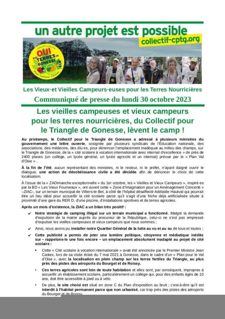 Collectif pour le Triangle de Gonesse (CPTG) qui lutte pour la préservation des terres contre les projets d’artificialisation et d’aménagements urbains